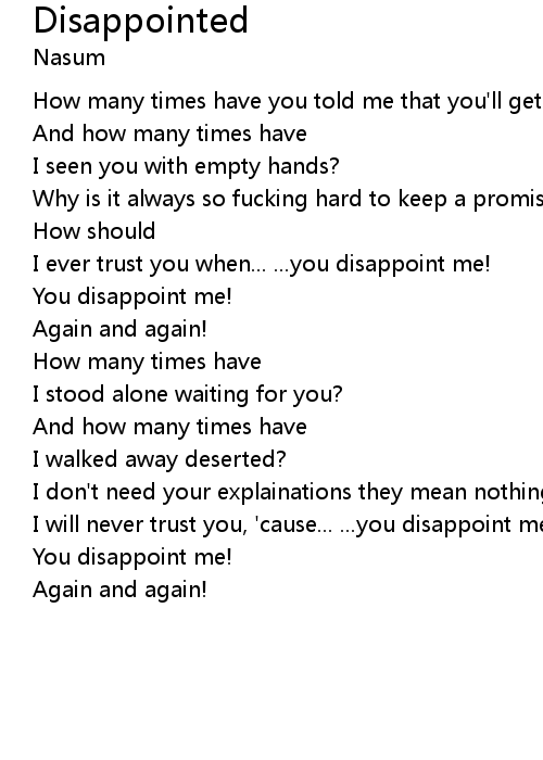 I will never trust you, 'cause... ...you disappoint me! |