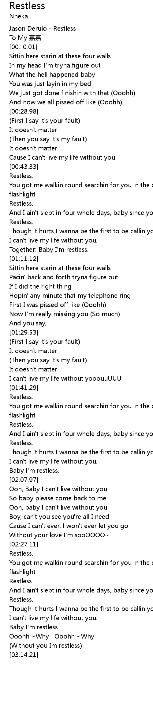 | [02:51.62] | Baby I' m restless. |