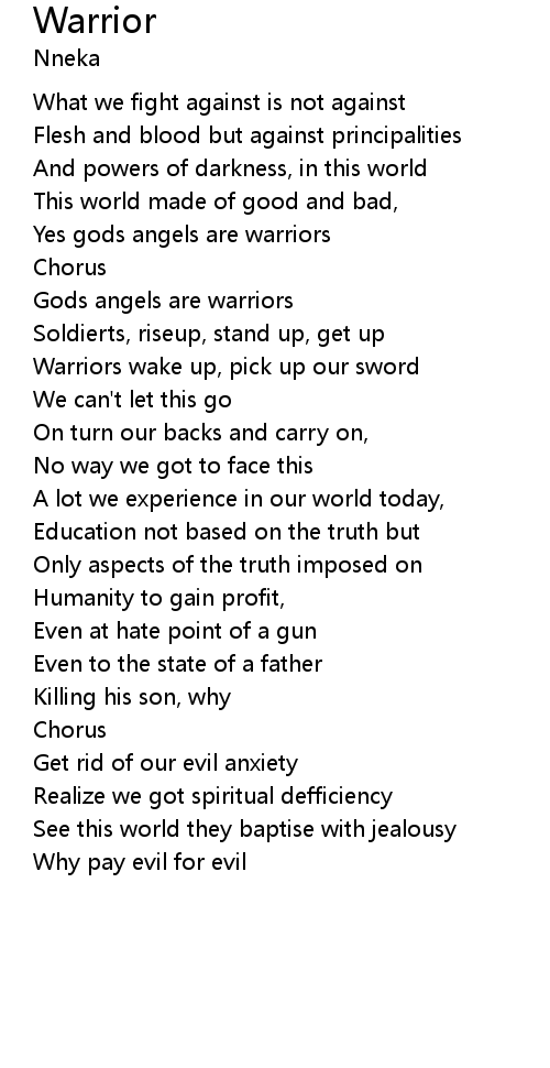 Gods angels are warriors |