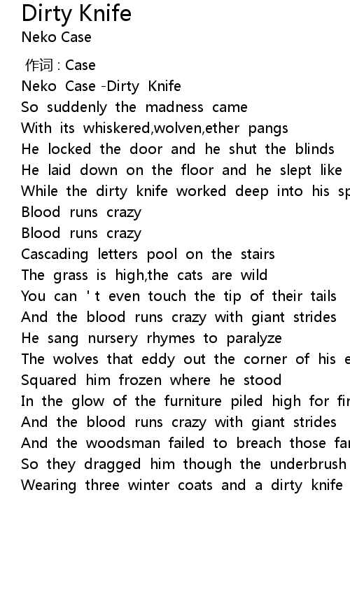 | [01:47.438] | Wearing three winter coats and a dirty knife |