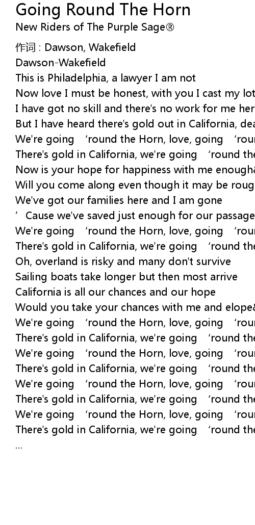 | We' re going ' round the Horn, love, going ' round the Horn | |