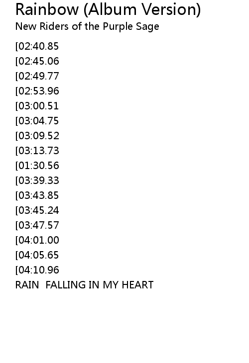 | [04:30.19] | RAIN FALLING IN MY HEART |
