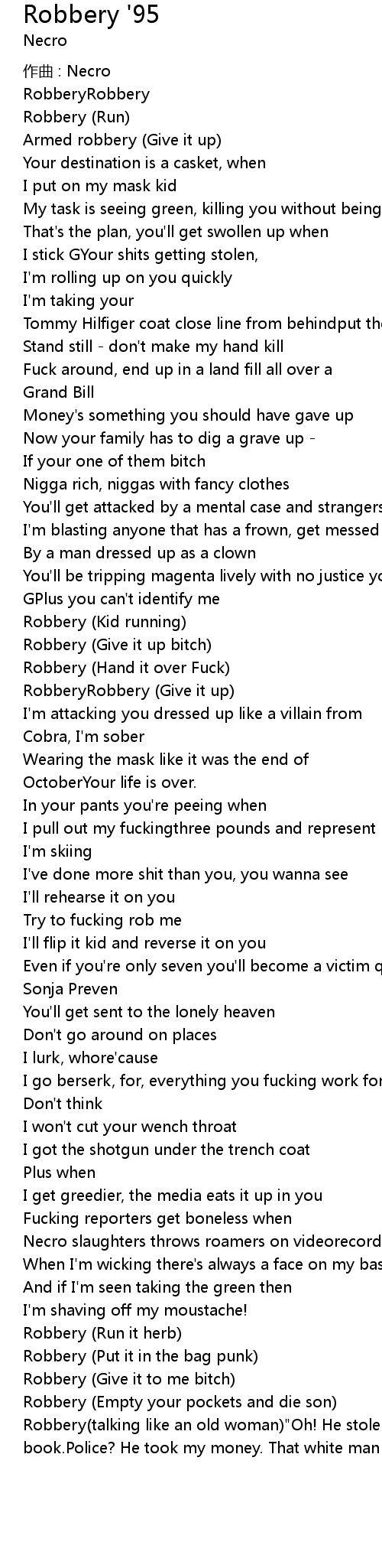 | Robbery talking like an old woman" Oh! He stole my wallet! He took my pocket book. Police? He took my money. That white man over there" |
