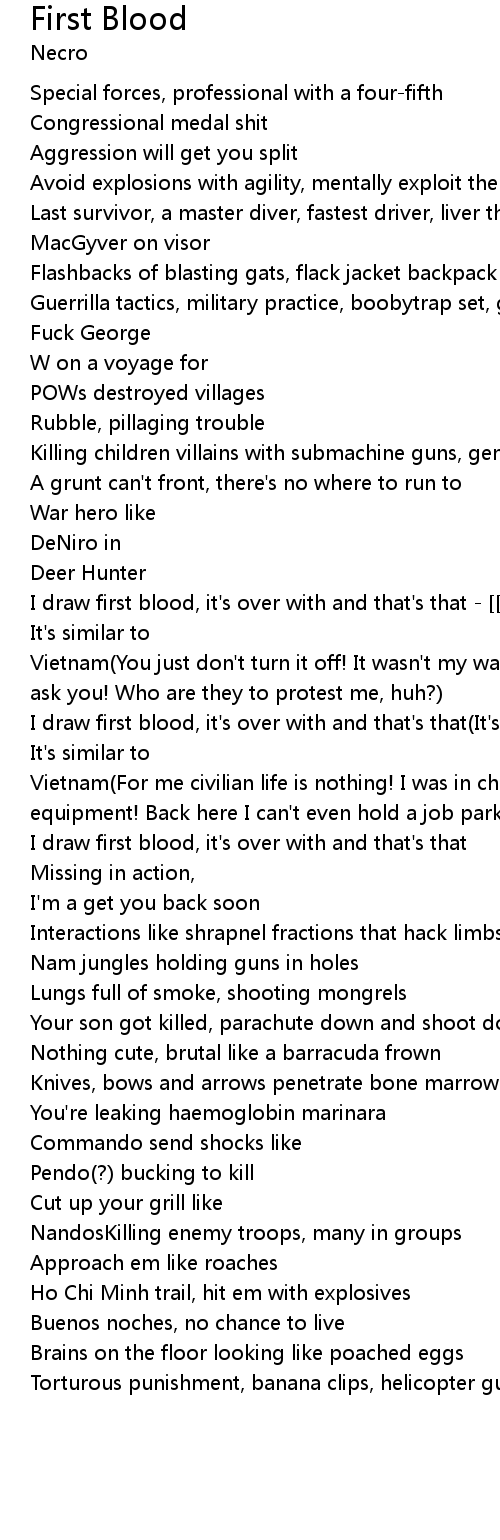 | I draw first blood, it's over with and that's that - [[Prodigy]] | |