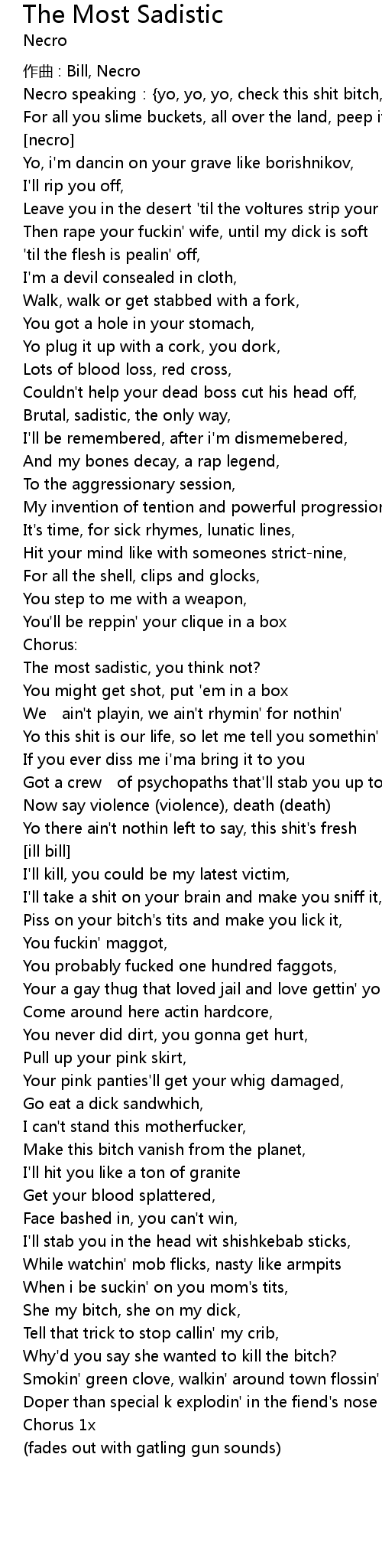 | Then rape your fuckin' wife, until my dick is soft | |