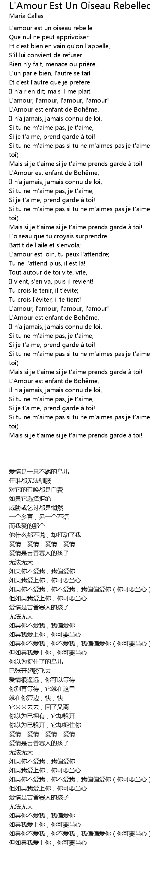 | [00:07.89] | L'amour est un oiseau rebelle |