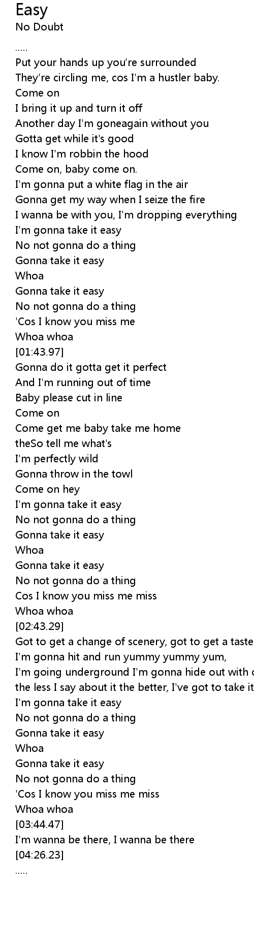 I'm gonna take it easy |