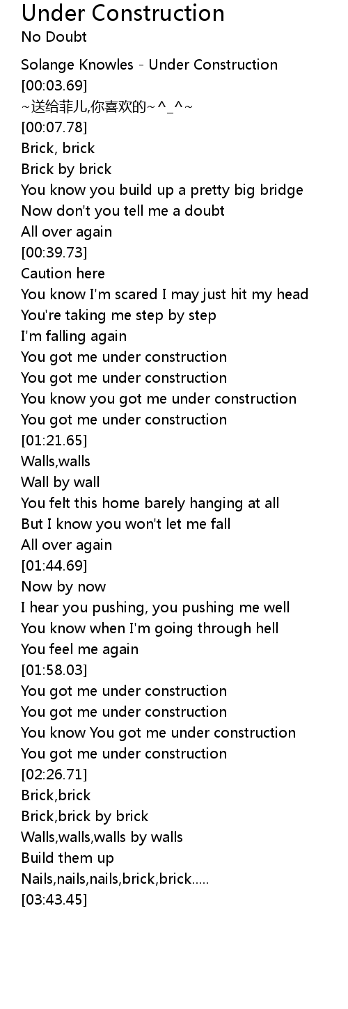 | [03:07.35] | Nails,nails,nails,brick,brick..... |