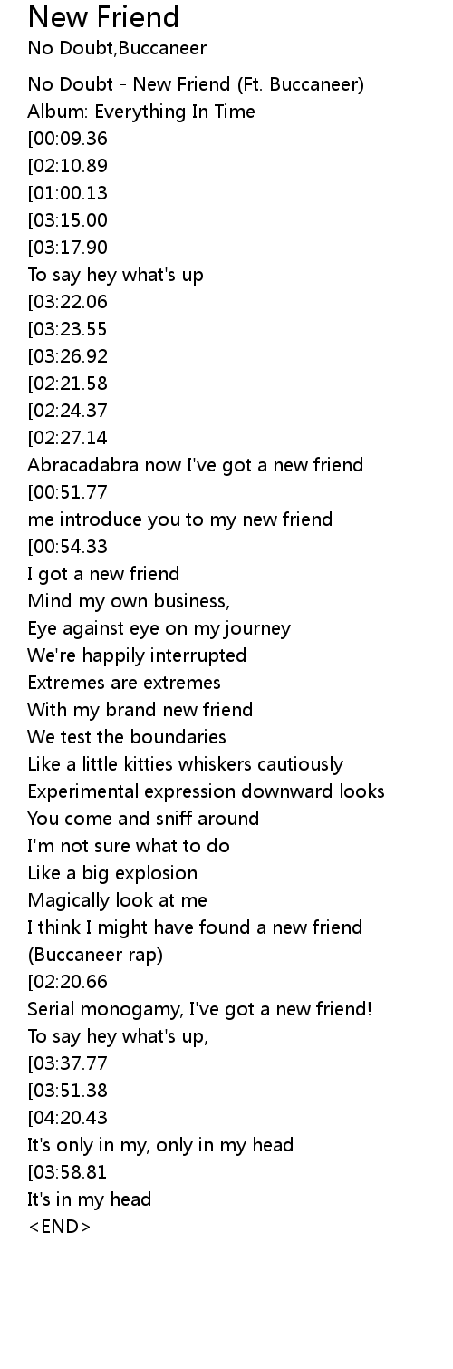 | [00:00.00] | No Doubt - New Friend (Ft. Buccaneer) |
