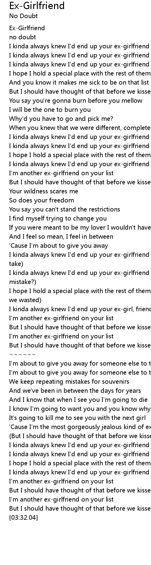 I kinda always knew I'd end up your ex-girl, friend |