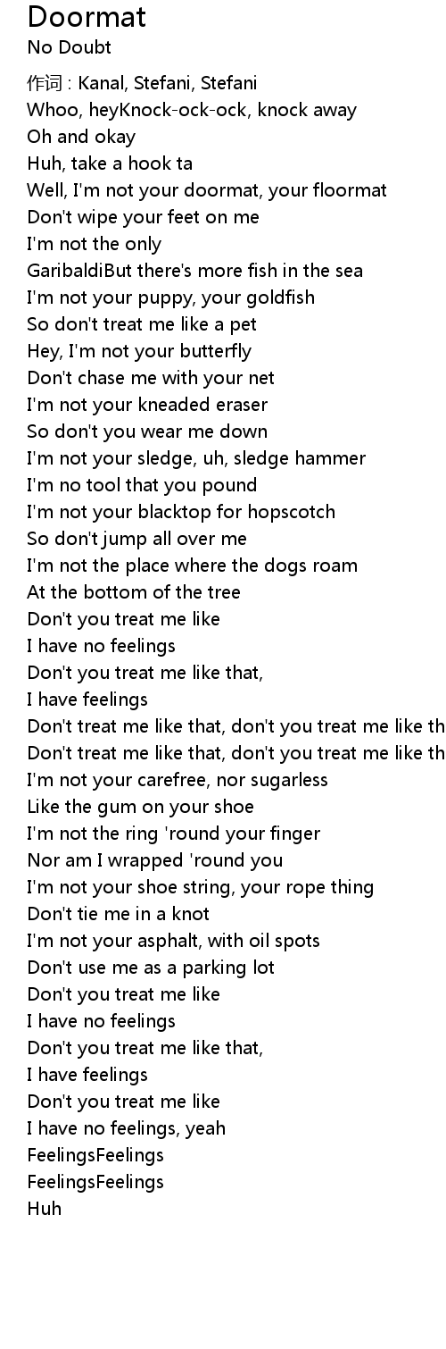 | Well, I' m not your doormat, your floormat | |