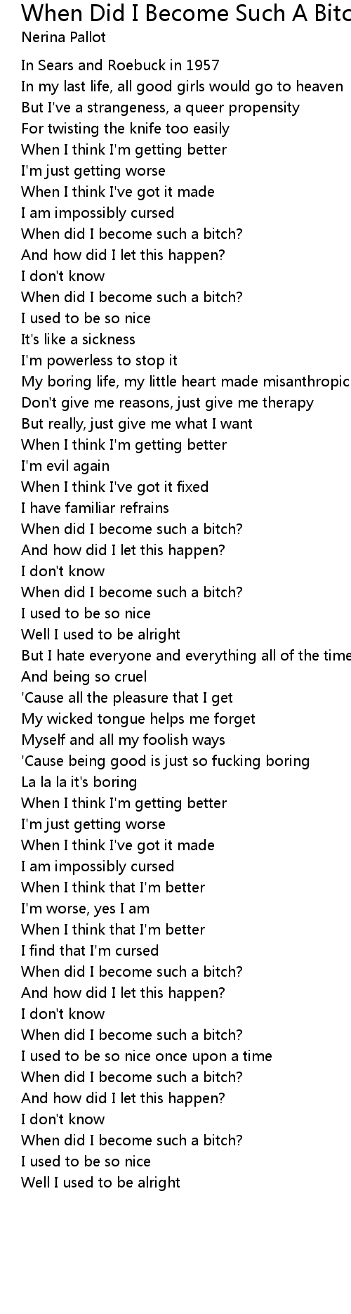 When did I become such a bitch? |