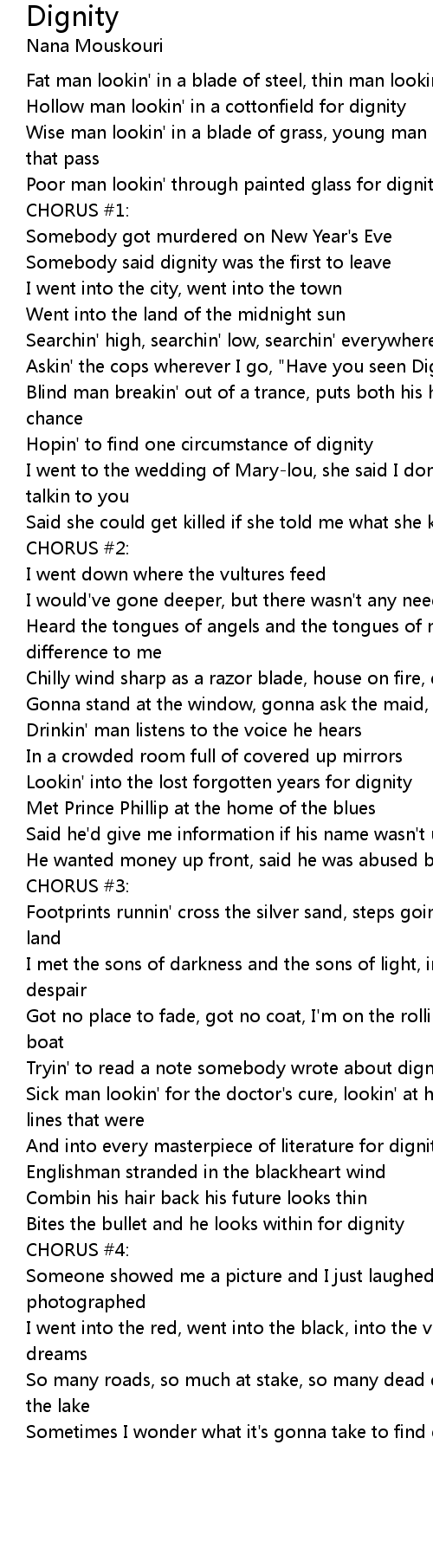 Sometimes I wonder what it's gonna take to find dignity |