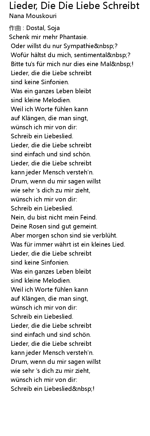 | Schreib ein Liebeslied nbsp! |