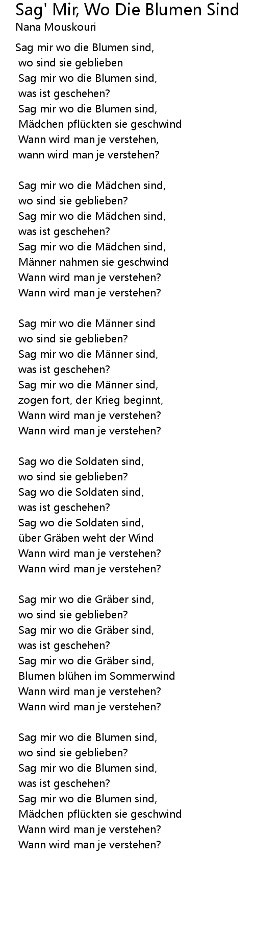 | Song | Sag' Mir, Wo Die Blumen Sind |
