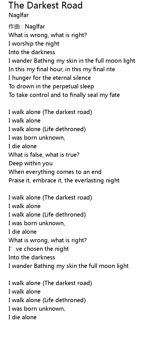 | I walk alone The darkest road | |