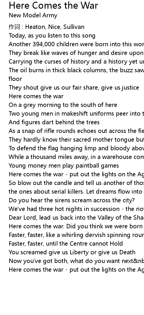 | Here comes the war. Did you think we were born in peaceful times? | |