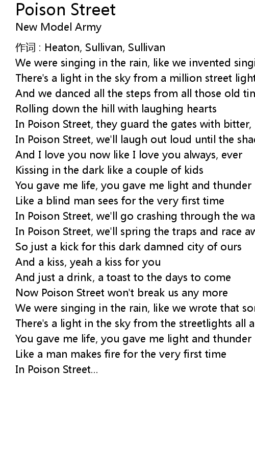 | In Poison Street, we'll go crashing through the walls that history made for us | |