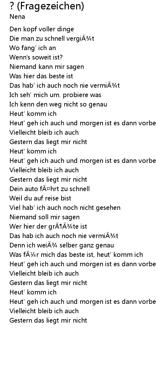 | Heut' geh ich auch und morgen ist es dann vorbei | |