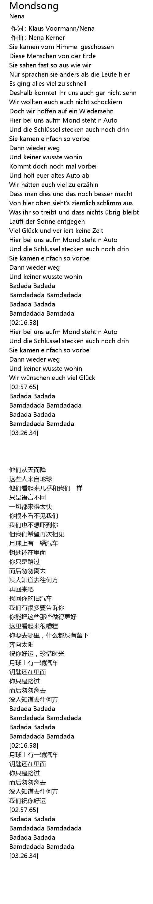 | [00:00.000] | 作词 : Klaus Voormann/Nena |