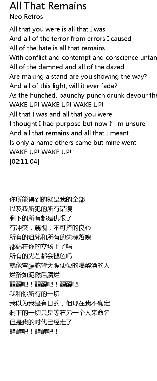 | [01:19.54] | WAKE UP! WAKE UP! WAKE UP! |