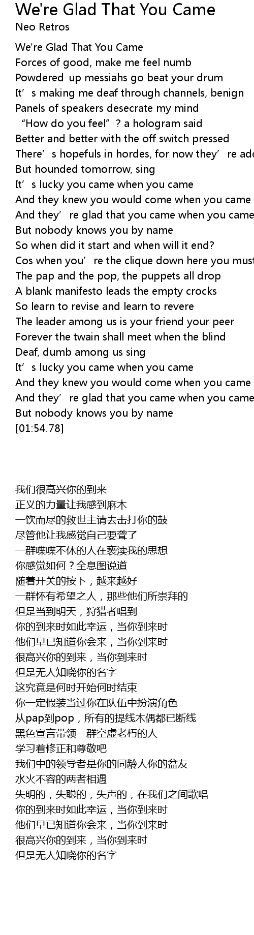 | [00:47.17] | And they' re glad that you came when you came |