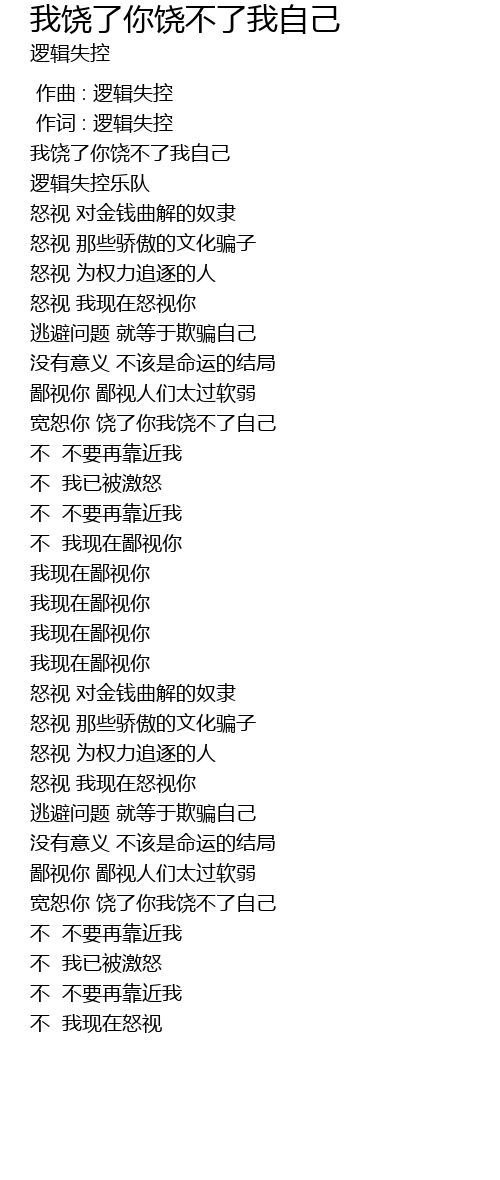 | [00:01.00] | 作词 : 逻辑失控 |