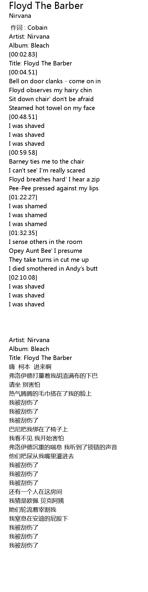 | [01:18.39] | Pee-Pee pressed against my lips |