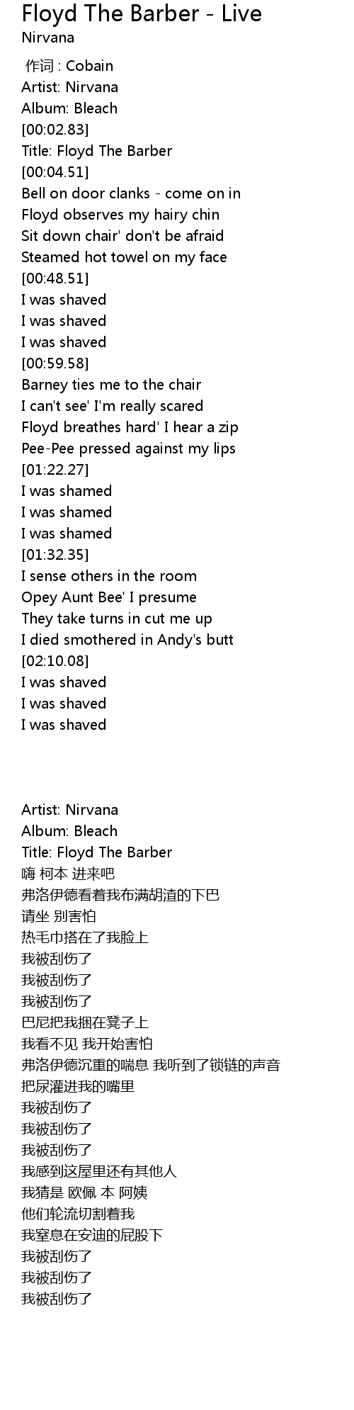 | [02:12.33] | I was shaved |