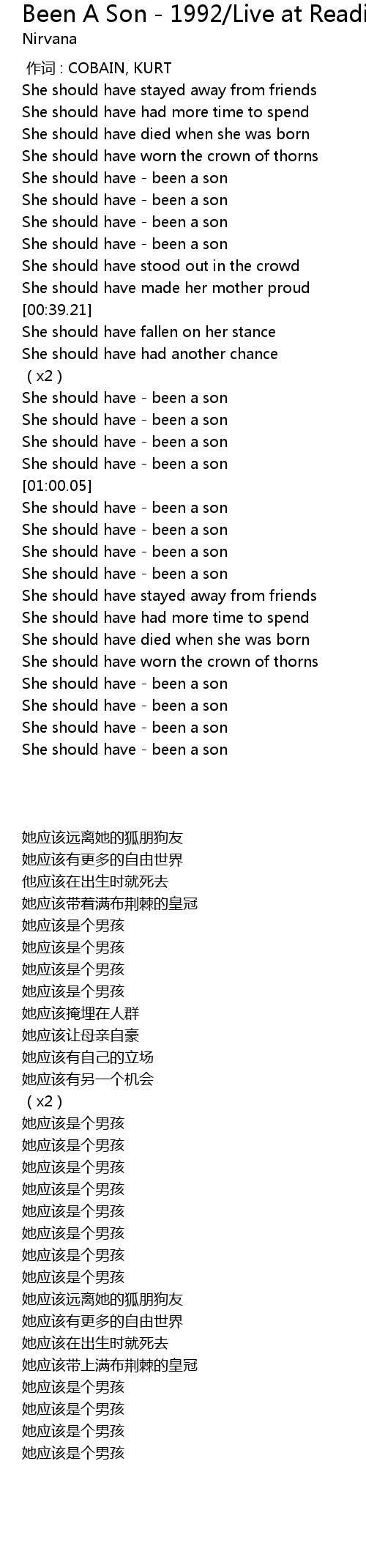 | [00:00.00] | 作词 : COBAIN, KURT |