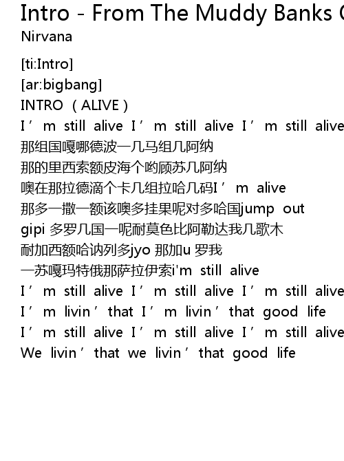 | [00:09.511] | ō zài nà lā dé dī gè kǎ jǐ zǔ lā hā jǐ mǎ I ' m alive |