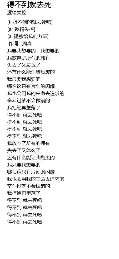 | [01:25.580] | dé bú dào jiù qù sǐ ba |