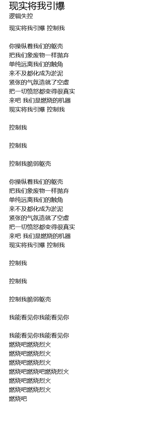| xiàn shí jiāng wǒ yǐn bào kòng zhì wǒ | |