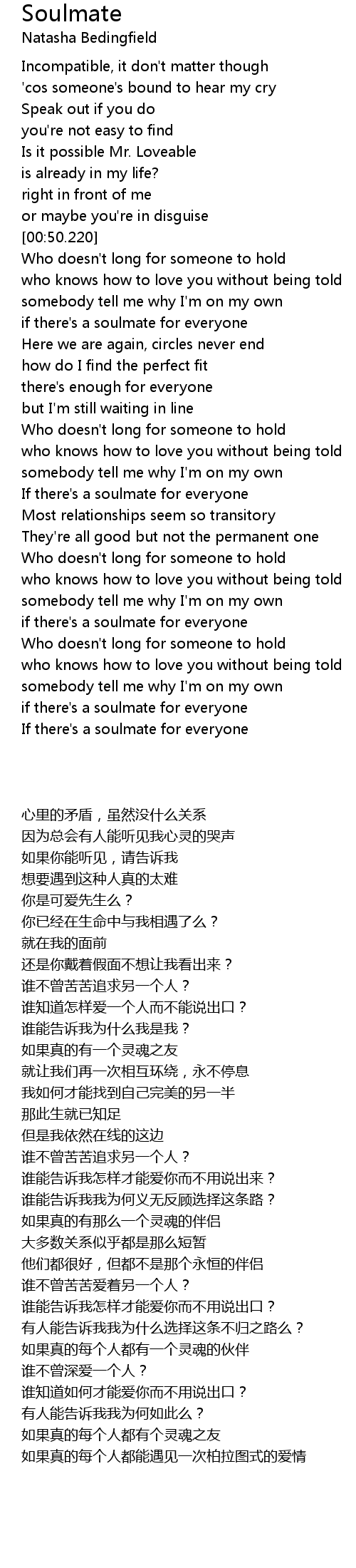 | [02:45.798] | if there's a soulmate for everyone |