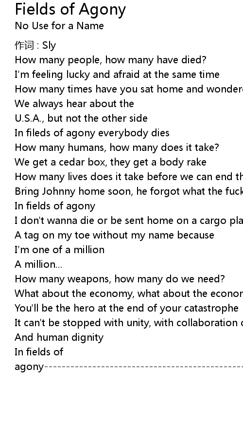 | Bring Johnny home soon, he forgot what the fuck that they were fighting for | |