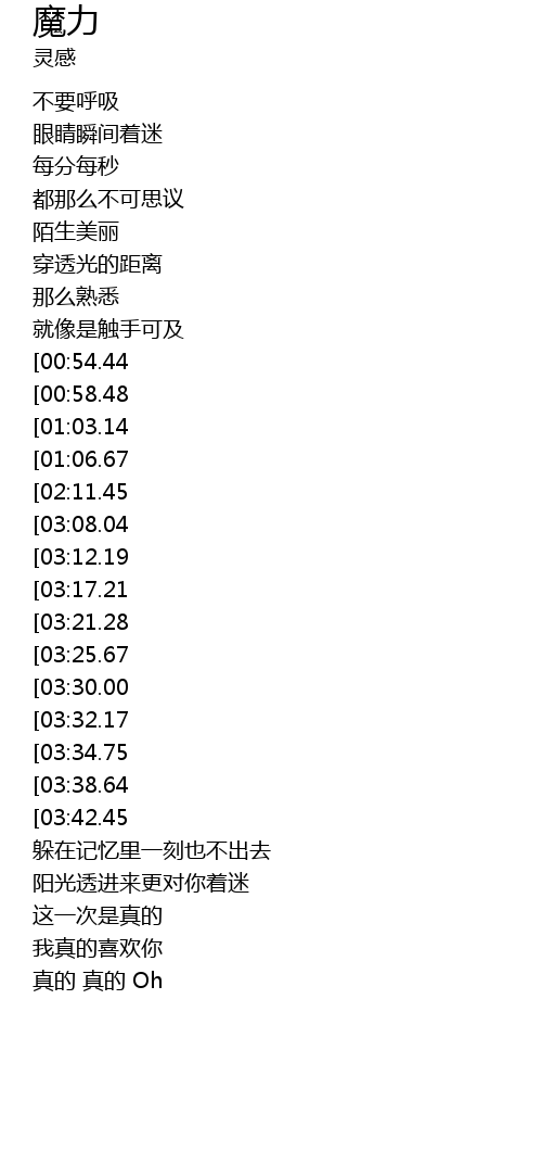 | [04:01.71][03:25.67][02:33.26][01:32.13] | 让我拥有魔力 |