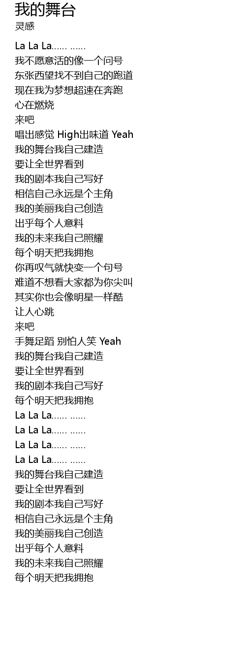 | [01:31.360] | wǒ de wǔ tái wǒ zì jǐ jiàn zào |