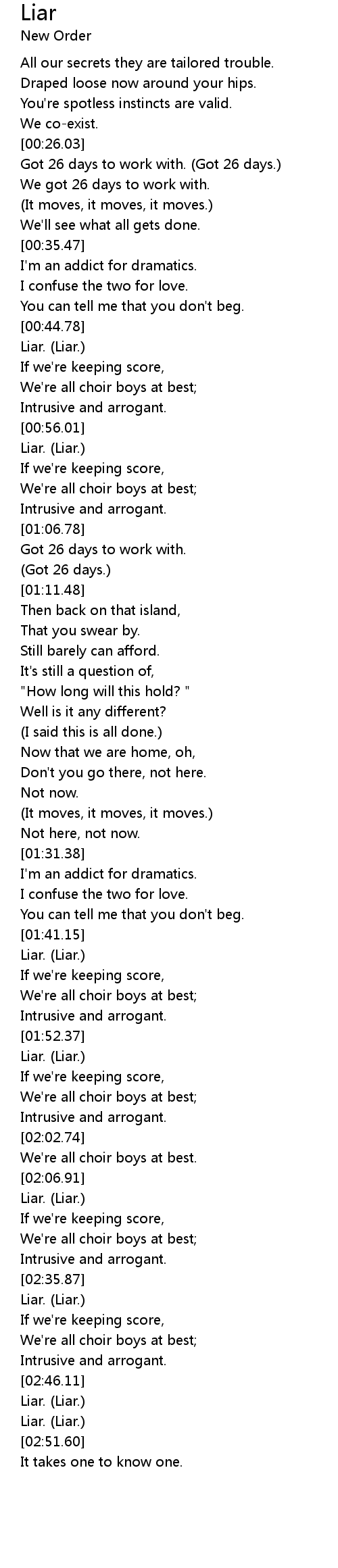 | [02:25.98] | Liar. (Liar.) |