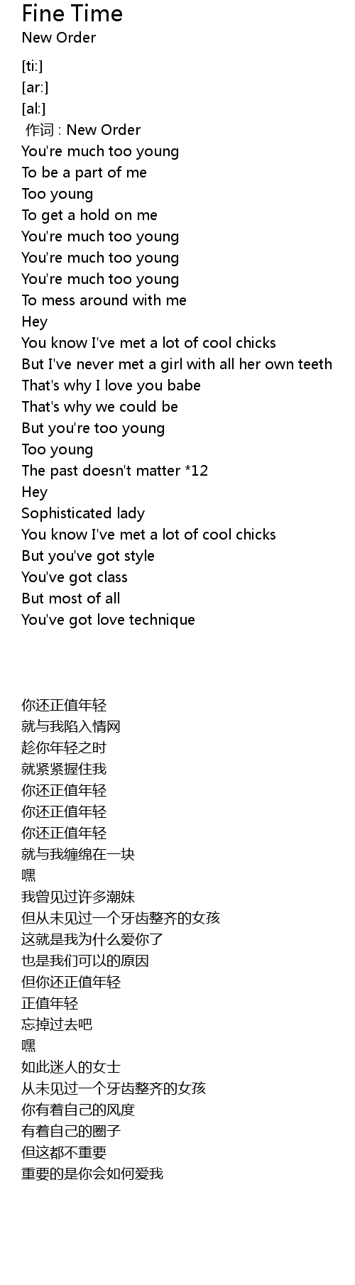 | [03:26.62] | You know I've met a lot of cool chicks |