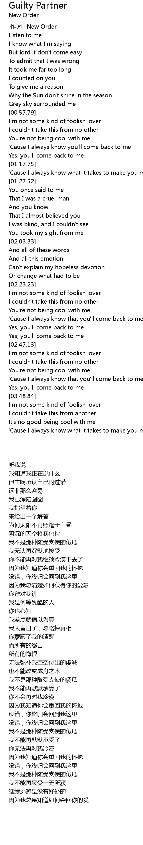 | [00:00.00] | 作词 : New Order |
