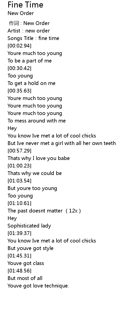 | [01:41.31] | You know Ive met a lot of cool chicks |