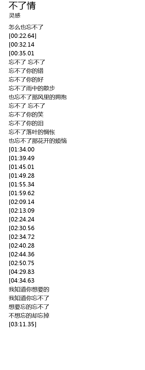 | [04:41.01][04:29.83][02:54.95] | 忘不了 忘不了 |