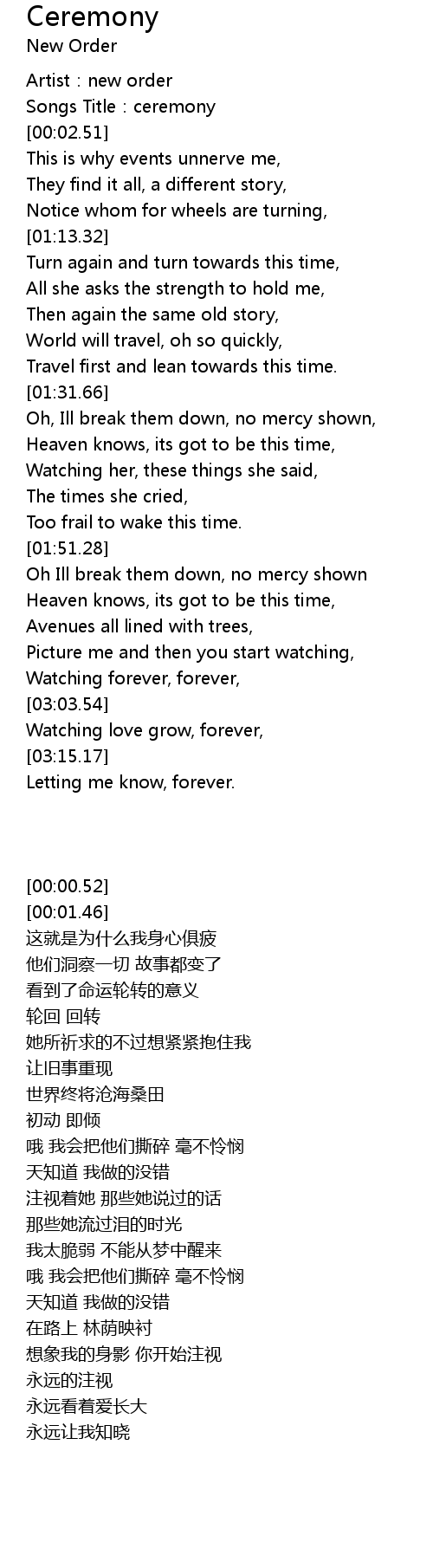 | [00:01.46] | Songs Title:ceremony |