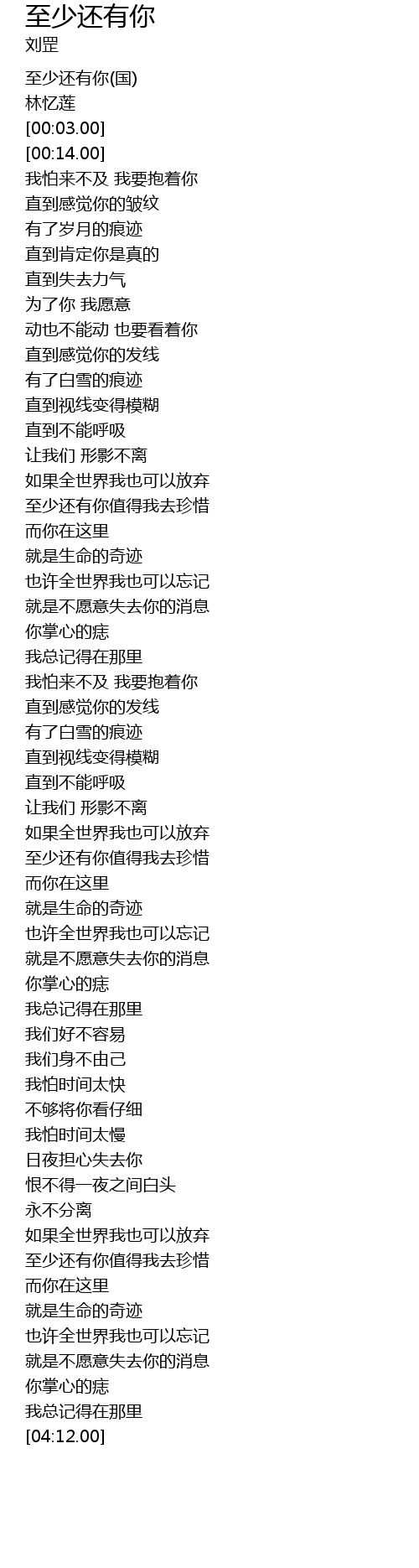 | [03:42.00] | 至少还有你值得我去珍惜 |