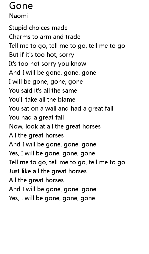 | And I will be gone, gone, gone | |