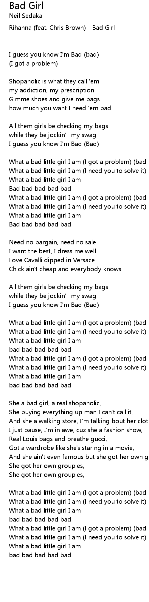 | What a bad little girl I am I got a problem bad bad | |