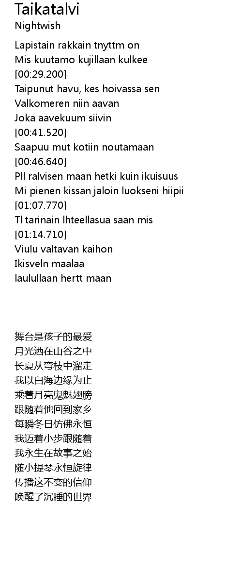 | [00:56.710] | Pll ralvisen maan hetki kuin ikuisuus |