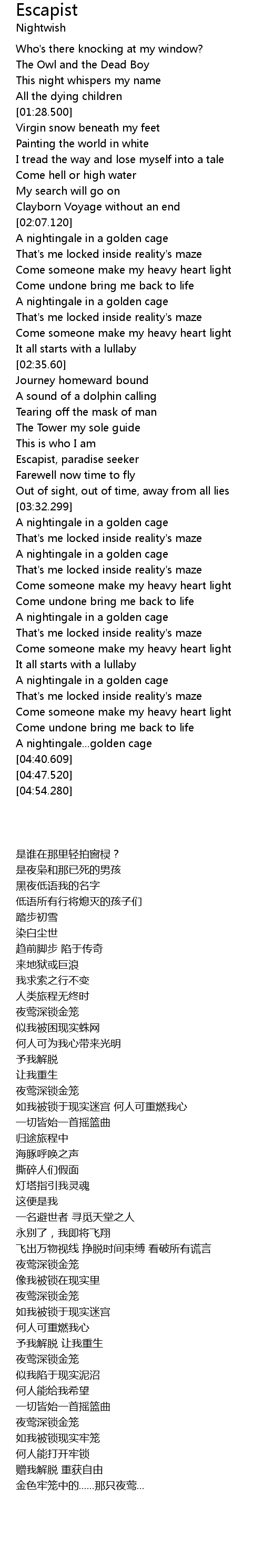 | [04:25.10] | A nightingale...golden cage |
