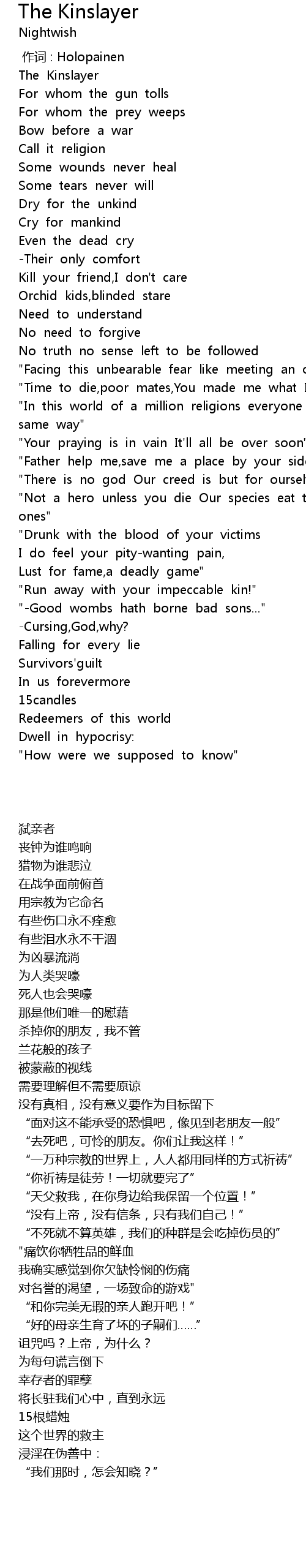 | [00:00.00] | zuò cí : Holopainen |