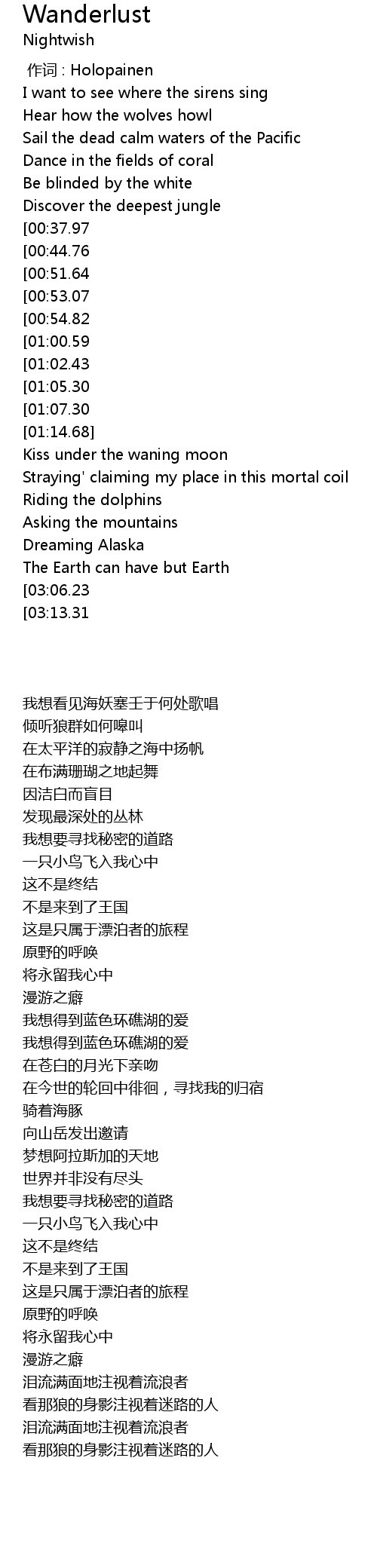 | [00:00.00] | zuò cí : Holopainen |